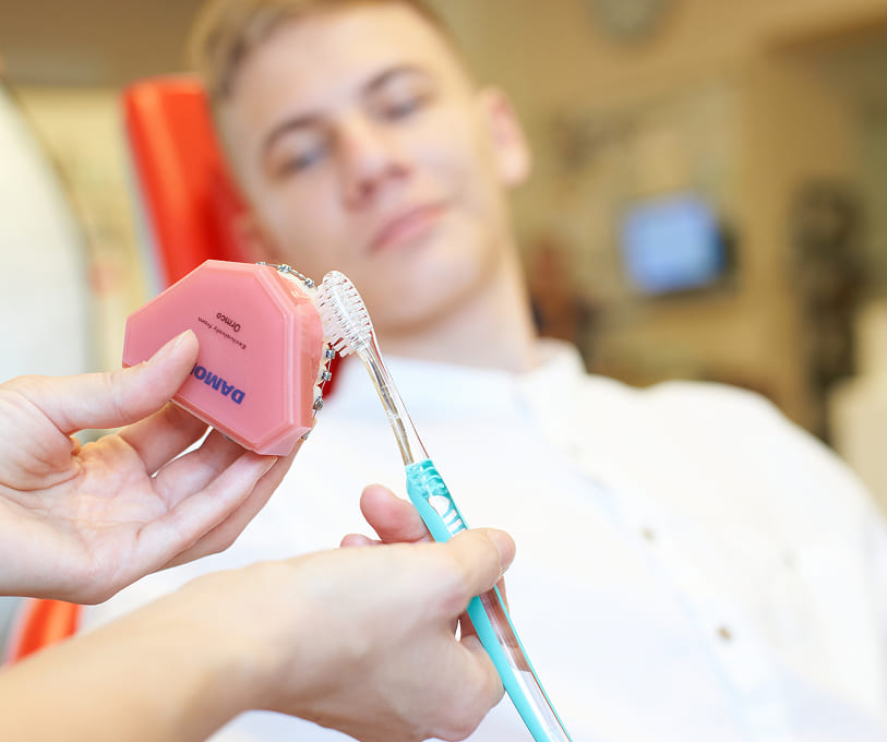 - брекеты Damon Clear на нижнюю или верхнюю челюсть, установка брекетов, ежемесячные посещения по активации аппаратуры, снятие брекетов, ретенционные (удерживающие) аппараты.